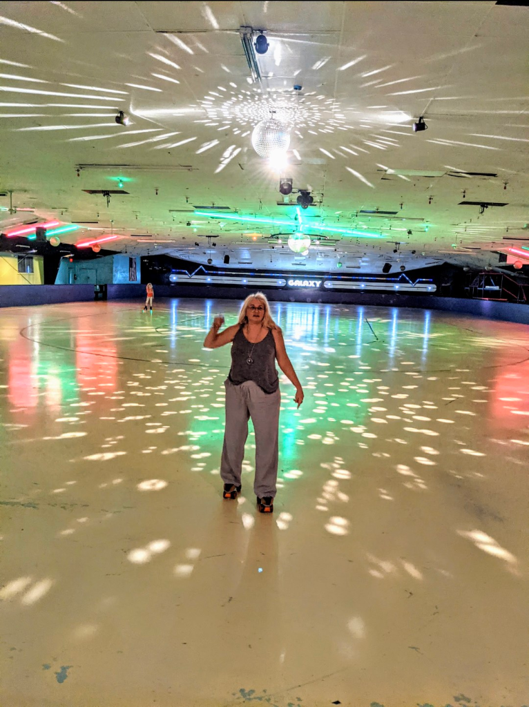 I was at my friend’s 50th surprise birthday party at a roller skating rink. I went around once carefully and told my hub 1 more time around. I didn’t even make it halfway. The thing is…I was once a pretty decent street skater. Age, weight gain, and a shift of body balance screwed me over. That’s my story and I’m sticking to it. At least I was doing something fun!