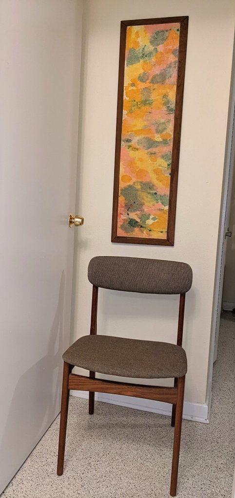 These all came from one family. Mom was from Europe who had a penchant for Danish furniture. Dad worked for the military gone away at times. Maybe he picked them up on his deployments for his beloved. One daughter had the twin beds in her room, the other had the wicker & wood bed. How they stayed in perfect condition is beyond me when I think of my rough and tough childhood.