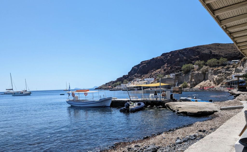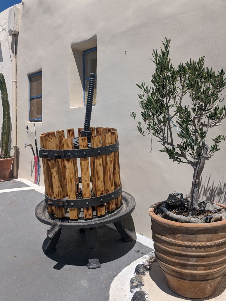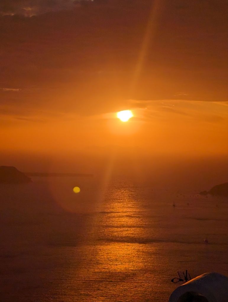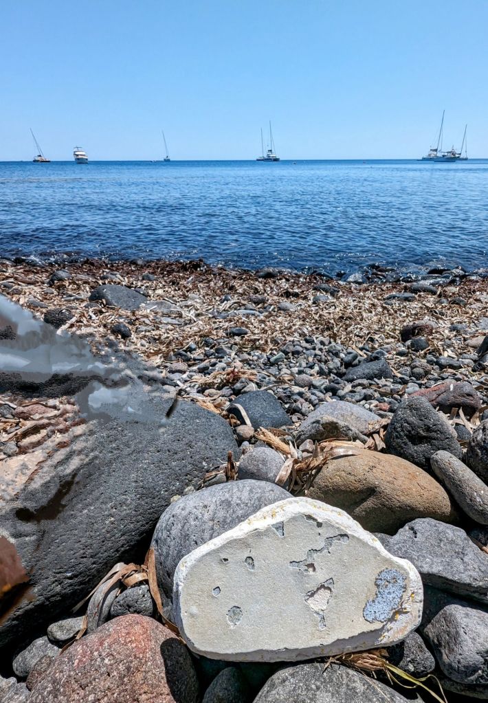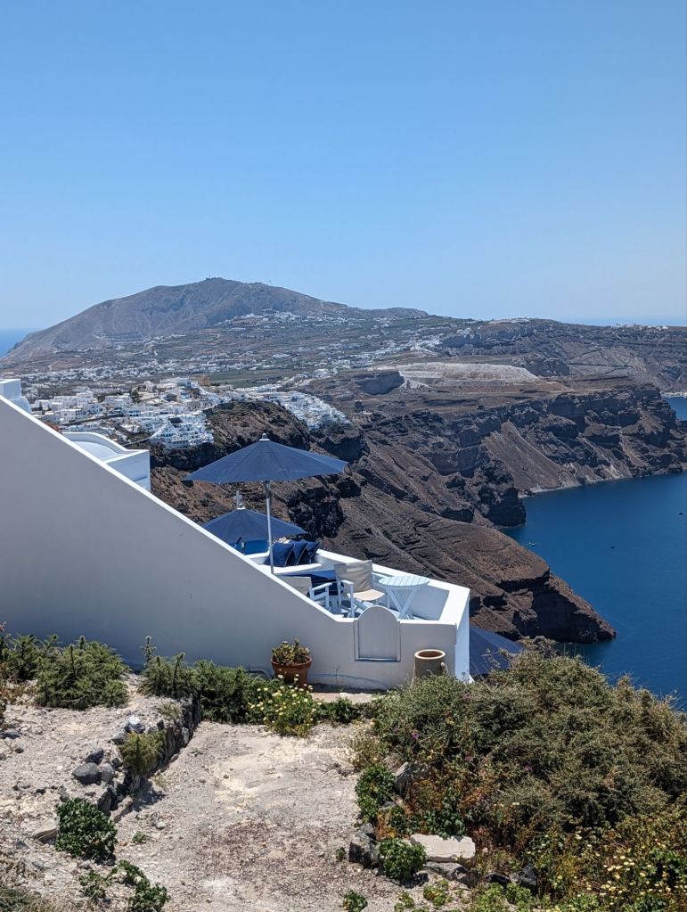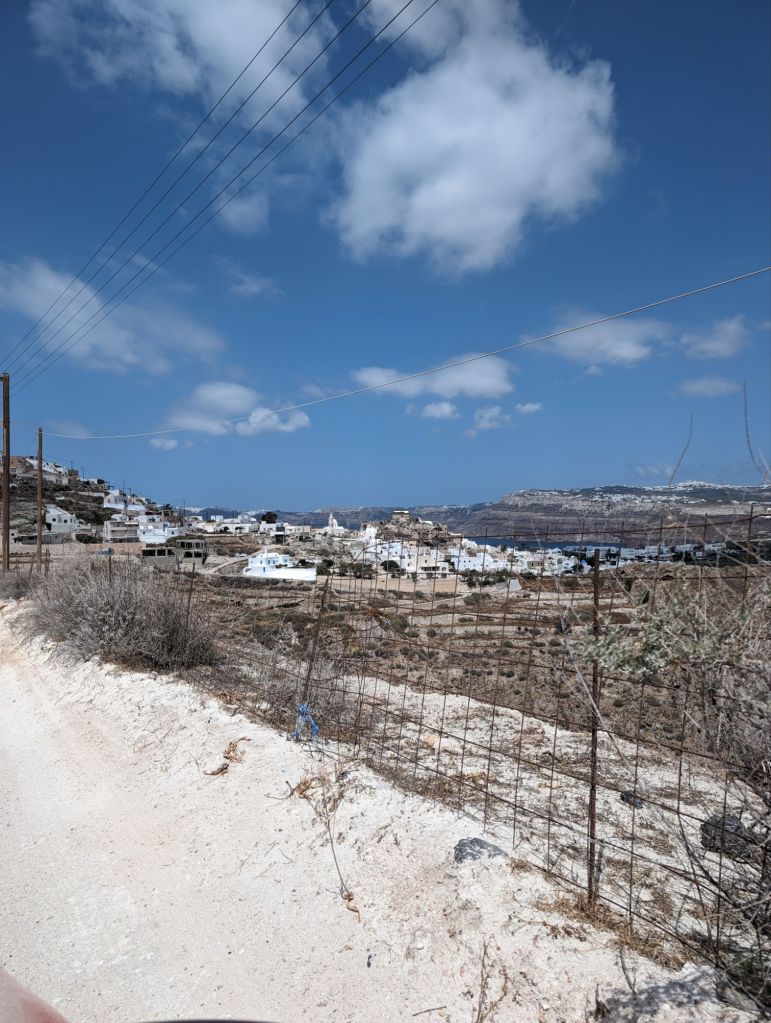 So I was, ok, just here for the history. But… Somehow the people of Santorini turned a dry rocky deserty volcano erupted place with crazy high cliffs and rocky beaches down stupid curvey roads and with cold water to boot into a beautiful worldwide sought after vacation location.