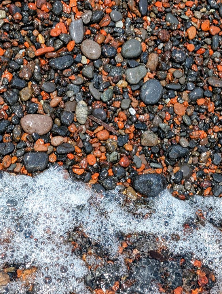 After that we found out about the ferry back to our town as we were not going to climb over that cliff again. We ate at the beach and I did a bunch of sea glass hunting while we waited for the ferry. We were also entertained by two guys working on laying down a wood path on the sand. When on holiday, chilling, you notice the little things. It was quite a nice afternoon and ferry ride back.